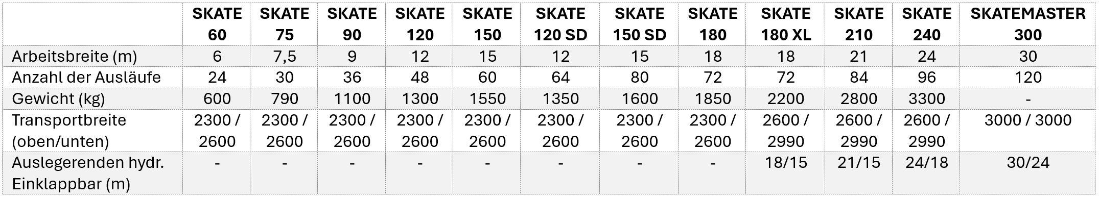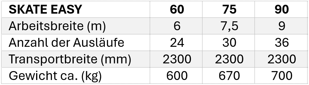 Fliegl erweitert seine SKATE-Serie um einen kompakten Schleppschuhverteiler mit Arbeitsbreiten von 6000 mm, 7500 mm und 9000 mm. Mit nur 750 kg (SKATE 90) ist er besonders gewichtsoptimiert konstruiert. Die Schwimmstellung sorgt jederzeit für exakte Bodenanpassung, während die Bedienung über die Komfortsteuerung erfolgt – optional auch über ISOBUS. Mit 2,30 m Transportbreite ist der SKATE EASY ideal für kleinere Güllefässer und eignet sich perfekt zur Nachrüstung. Für alle, die präzise Verteilung bei minimalem Gewicht suchen.