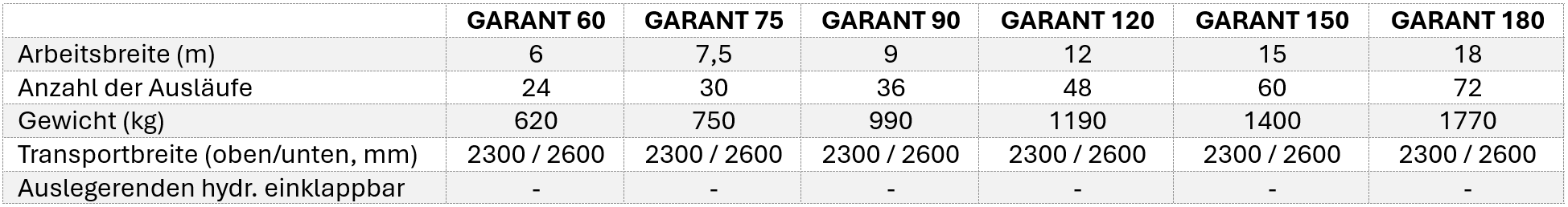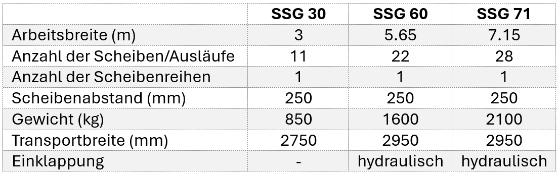 ➕Arbeitsbreiten von 8,50/12,00/15,00 m